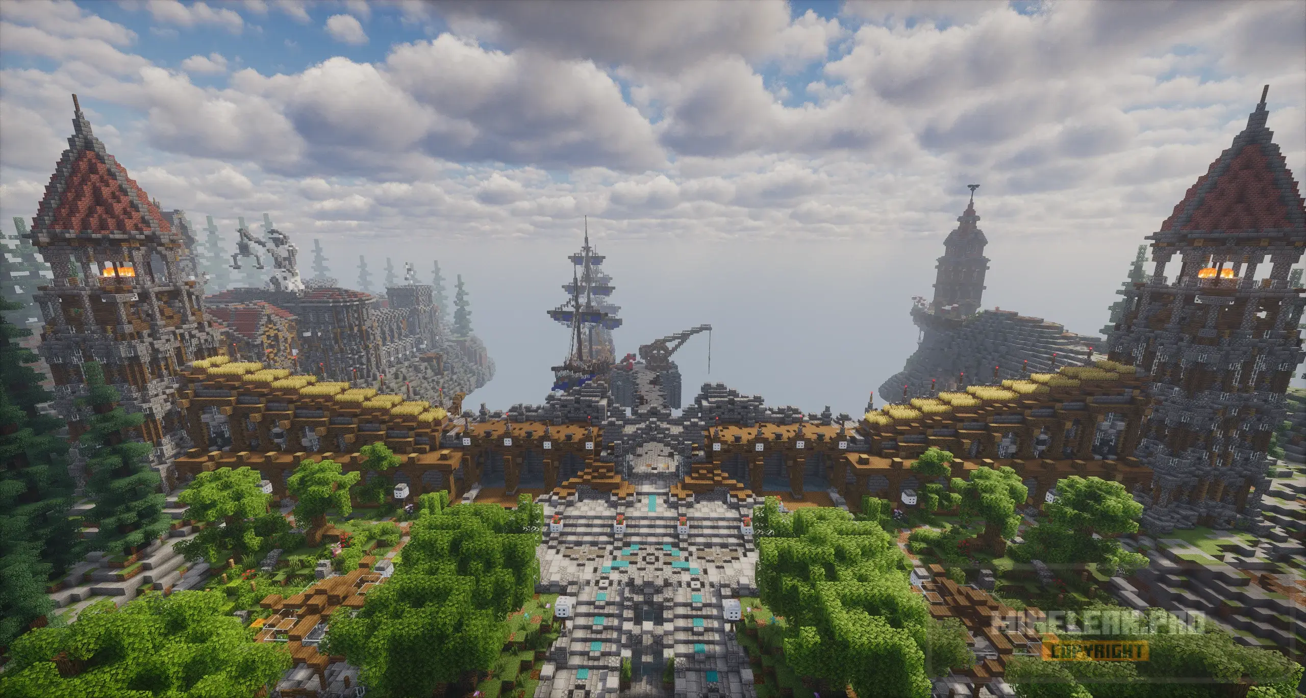 Спавн “Тортуга” — атмосферная карта в пиратской тематике. Постройка наполнена множеством детализированных элементов: деревянные здания, причалы, сторожевые башни и уютные улочки создают ощущение настоящего пиратского города.