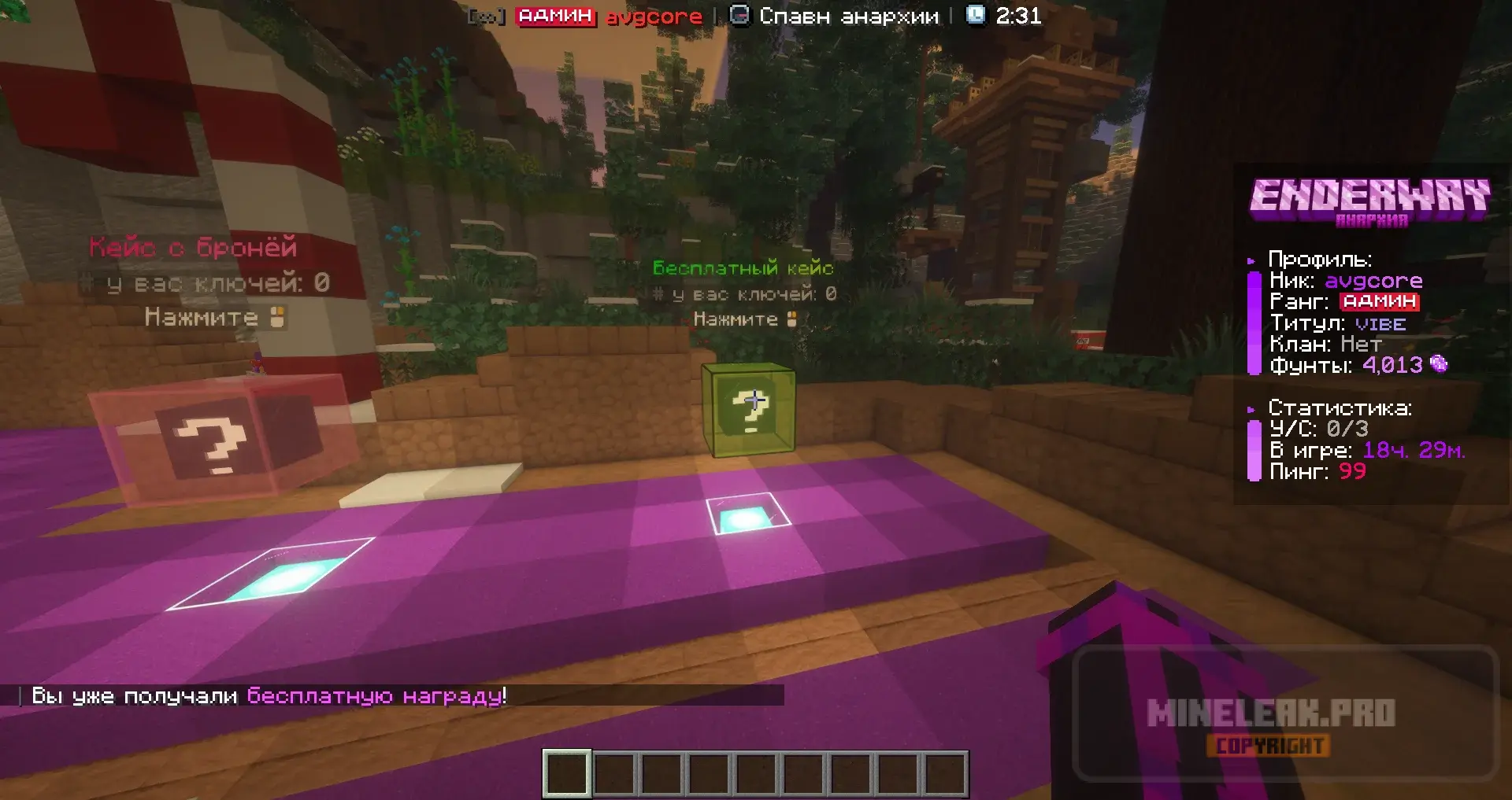 Красивые текстуры, авто-шахты, аукцион, различные ивенты, игровые и донатные кейсы,