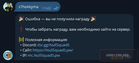 ❗ Чтобы забрать награду, вам необходимо зайти на сервер.