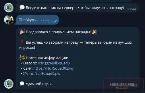 ❗ Вы успешно забрали награду — теперь вы один из лучших игроков!